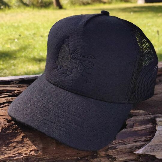Klasická černá trucker čepice s motivem Lva Judy