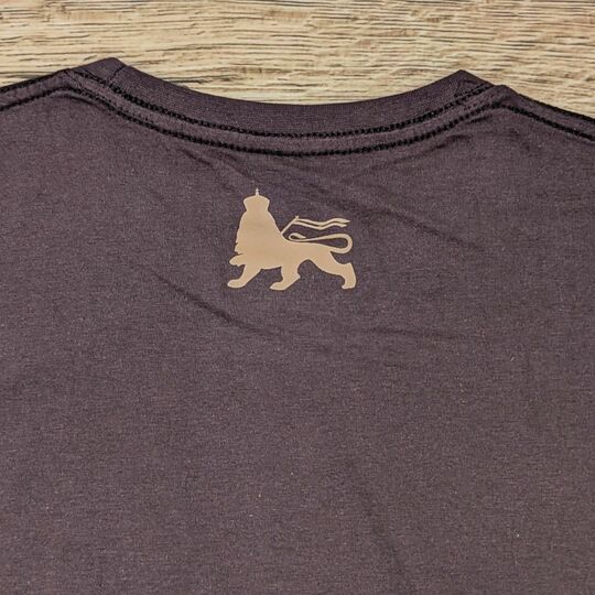 Na zadní straně, v oblasti krku, je decentní motiv Lva Judy – symbol síly a víry v duchu Rastafari.