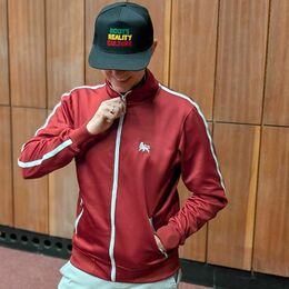 Tahle stylová sportovní mikina přináší dokonalé spojení nostalgie a moderního streetwearu v duchu roots & reggae. Je inspirována ikonickými teplákovými bundami z osmdesátých a devadesátých let – hluboký vínový odstín, doplněný bílými pruhy a zipy, jí dodává výrazný vintage charakter.