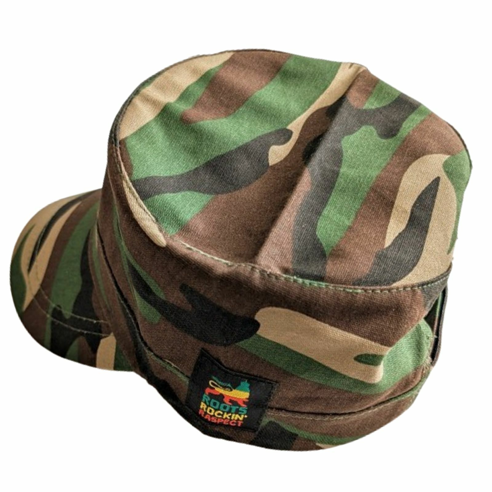 Má krátký tvarovaný kšilt se dvěma dekorativními prošitými liniemi a na levé straně emblém Roots Rockin’ Raspect, který dodává čepici osobitý rasta charakter.