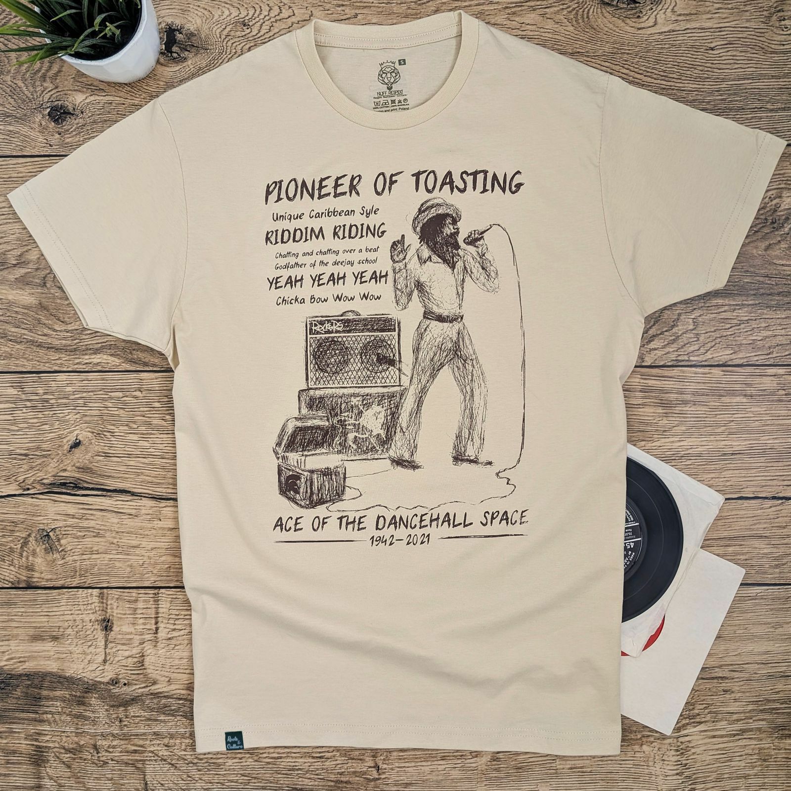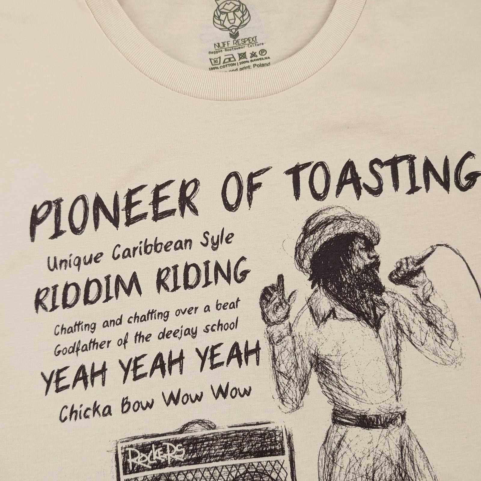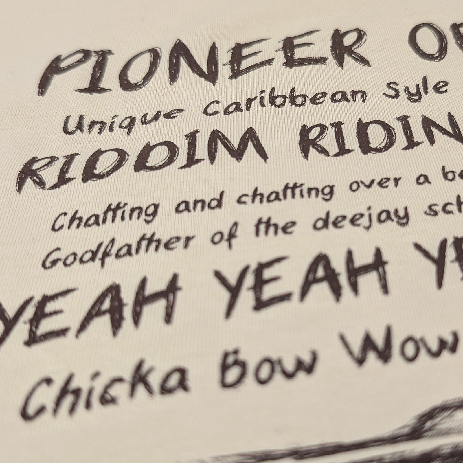 "Pioneer of Toasting, Unique Caribbean Style, Riddim Riding, Chatting and chatting over the beat, Godfather of the deejay school, Yeah Yeah Yeah, Chcicka Bow Wow Wow, Ace of the Dancehall Space",