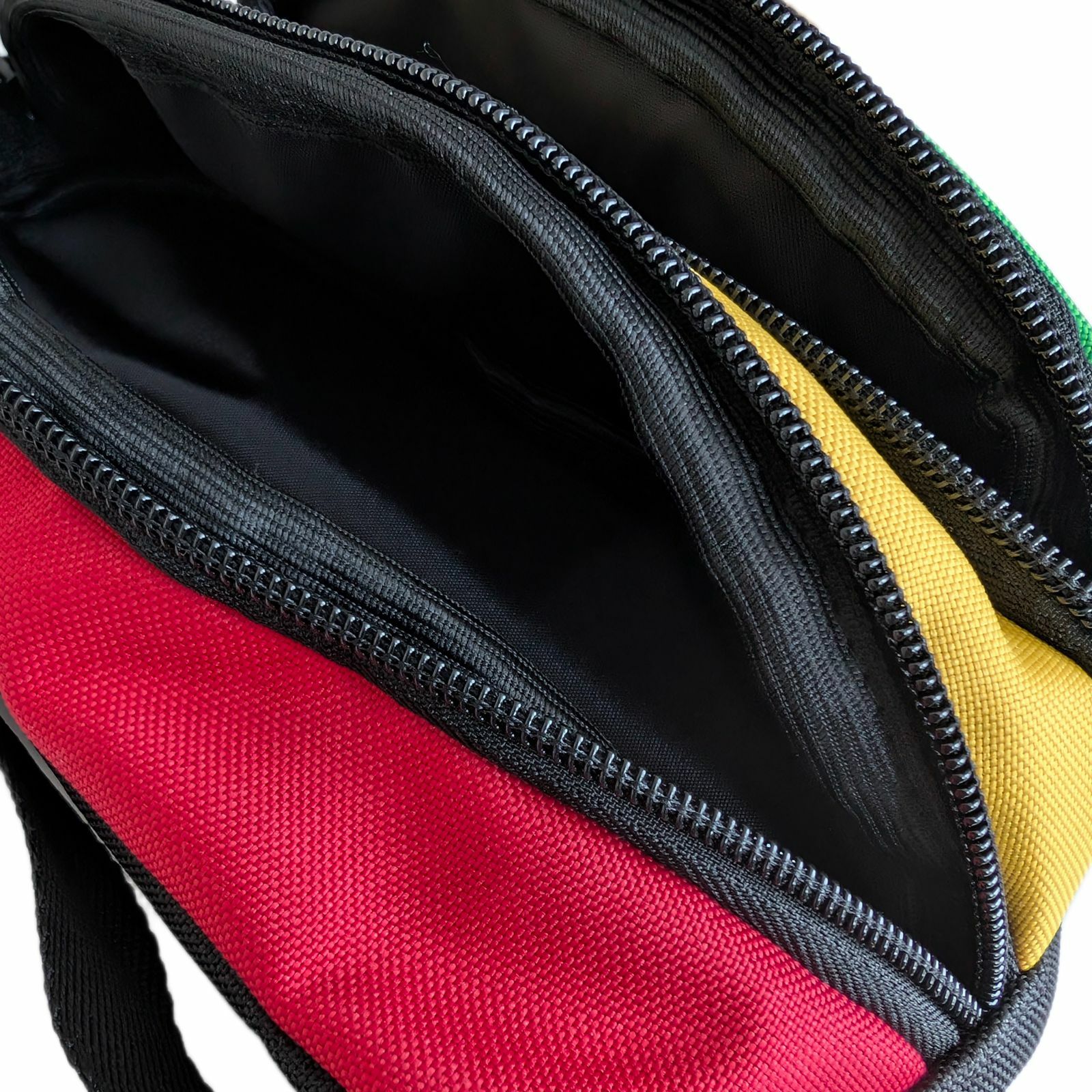 Kvalitní, pevná a stylová ledvinka v barvách Rasta – ideální na koncerty, festivaly i každodenní nošení.