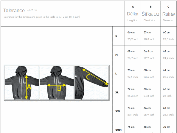 ✔️ Před nákupem si zkontroluj tabulku velikostí a porovnej ji s oblečením, které už máš.
