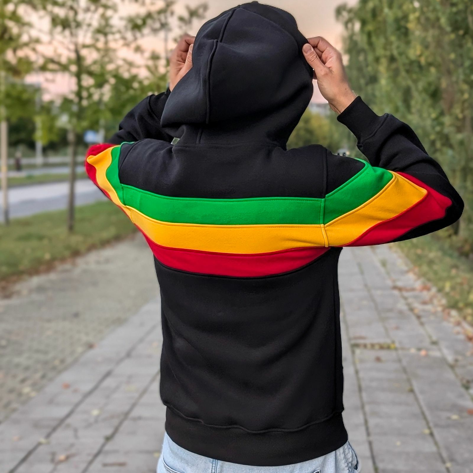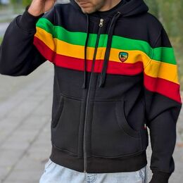Rozepínací mikina s kapucí inspirovaná kulturou Roots Reggae