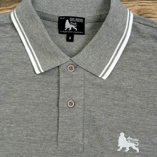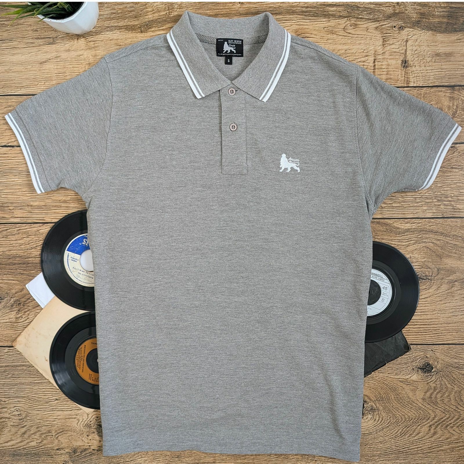 Elegantní polo tričko v decentním šedém odstínu s jamajským duchem a symbolem Lva Judy – ideální kombinace kvality, stylu a pohodlí.